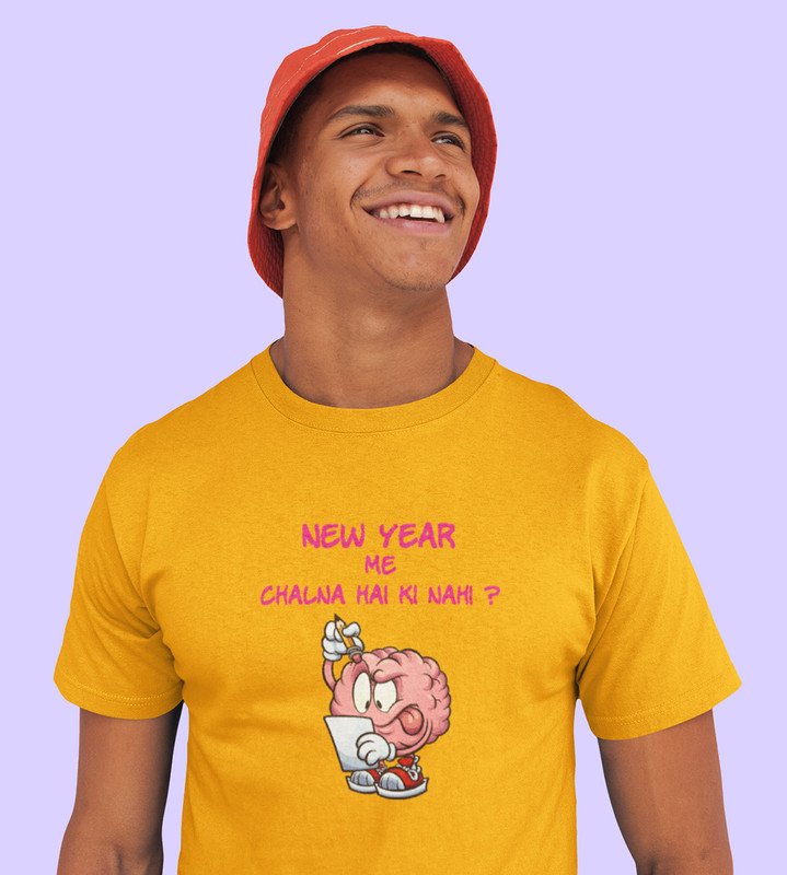You Want To Work? Yellow Printed T-shirt For Mens On New Year Theme Best Gift For New Year