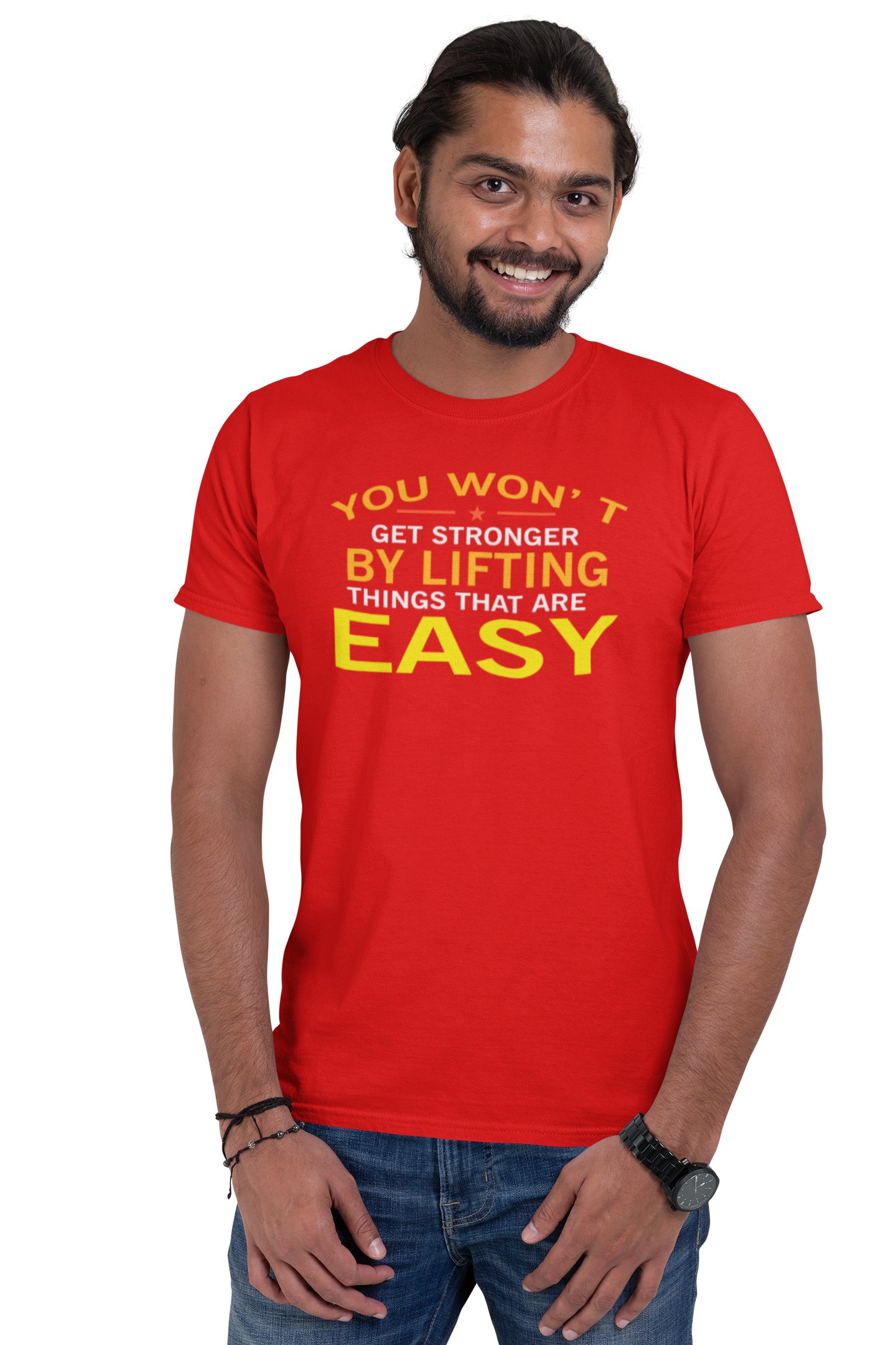 You Won't Get Stronger By Lifting Things, Round Neck Gym Tshirt (Red Tshirt) - Foremost Gifting Material for Your Friends and Close Ones