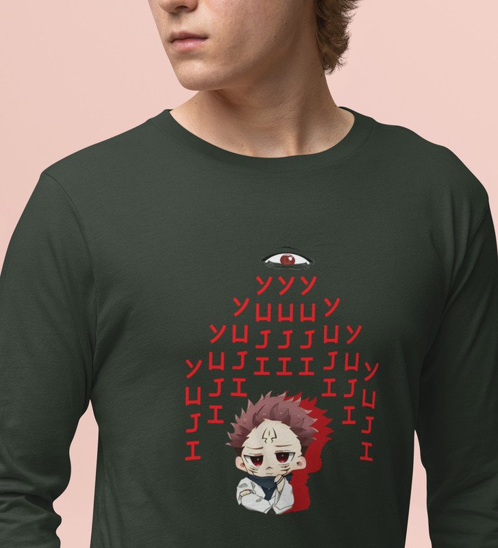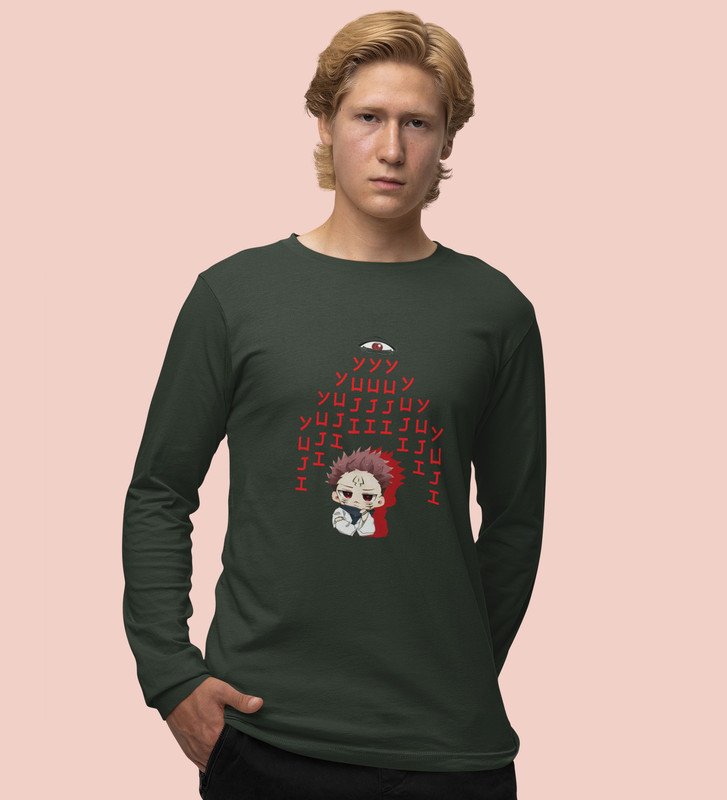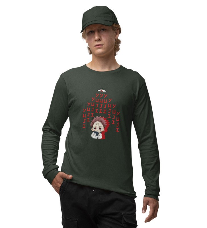 Yuji Itadori Printed Cotton Green Full Sleeves Tshirt For Mens and Boys