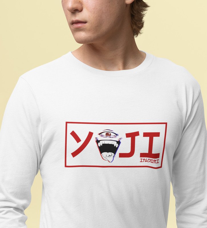 Yuji Itadori Printed Cotton White Full Sleeves Tshirt For Mens and Boys