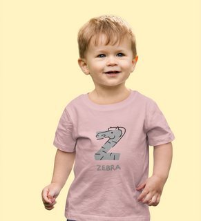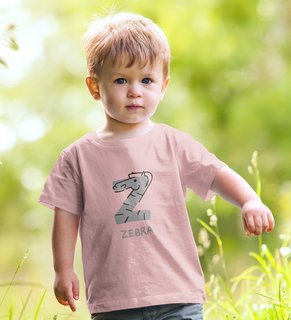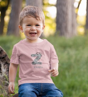 Zigzag Zebra,Boys Round Neck Printed Blended Cotton Tshirt (baby pink)