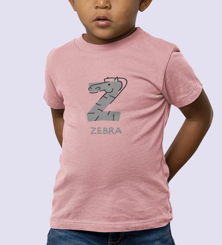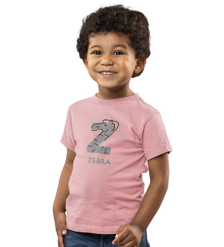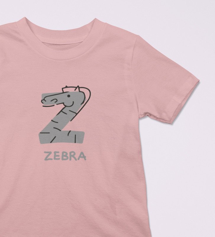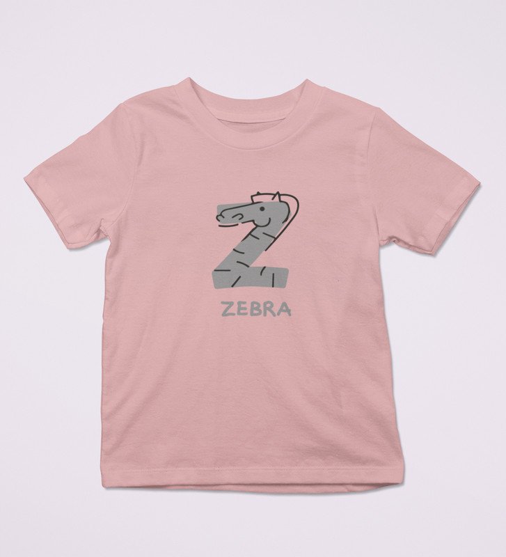 Zigzag Zebra,Boys Round Neck Printed Blended Cotton Tshirt (Baby pink)