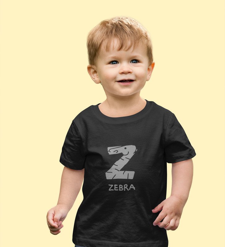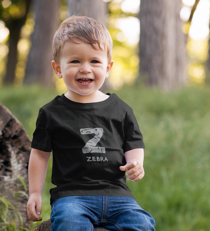 Zigzag Zebra,Boys Round Neck Printed Blended Cotton Tshirt (black)