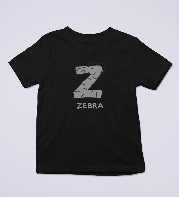 Zigzag Zebra,Boys Round Neck Printed Blended Cotton Tshirt (Black)