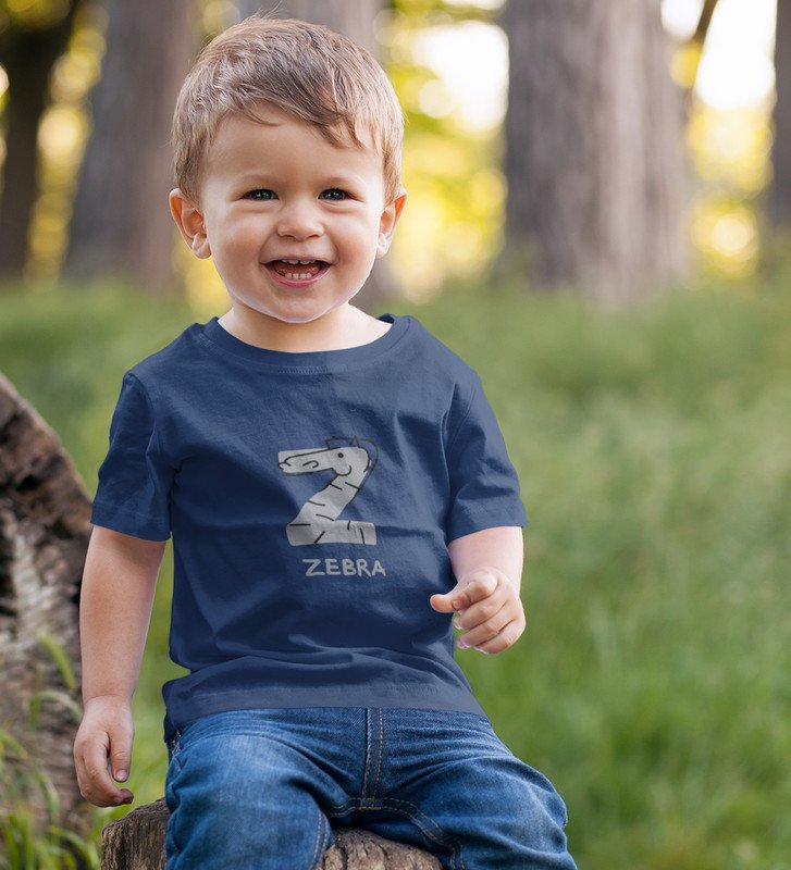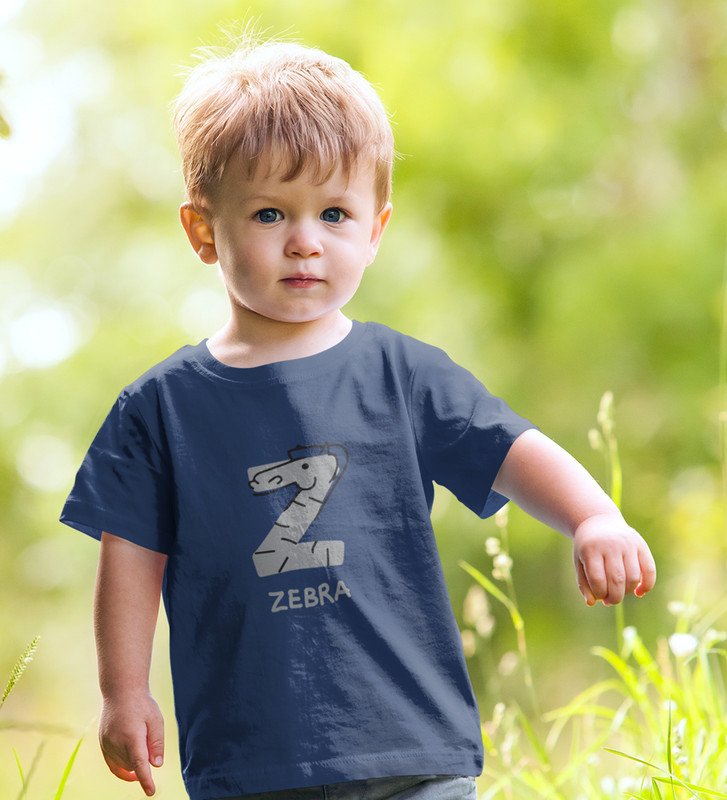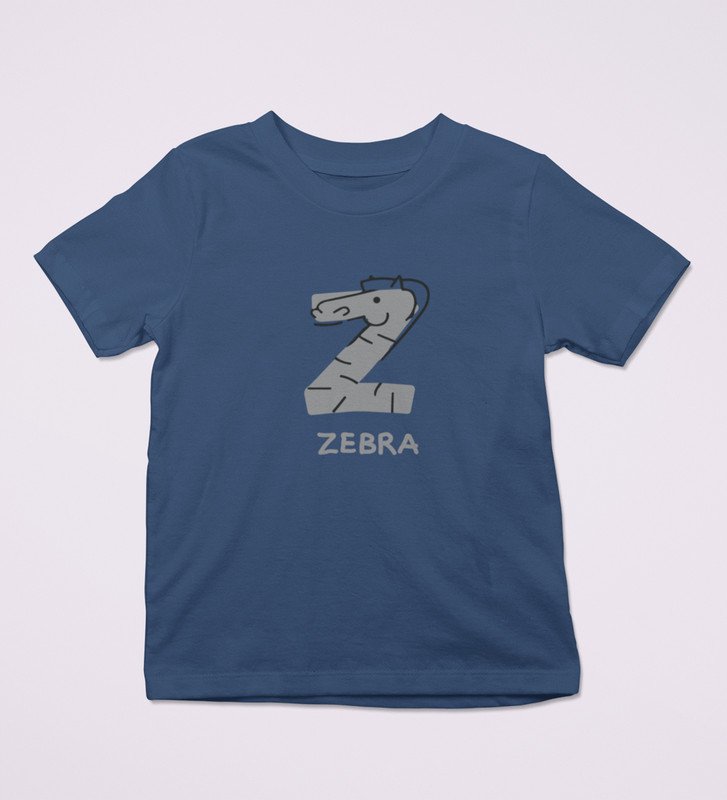 Zigzag Zebra,Boys Round Neck Printed Blended Cotton tshirt (Navy blue)