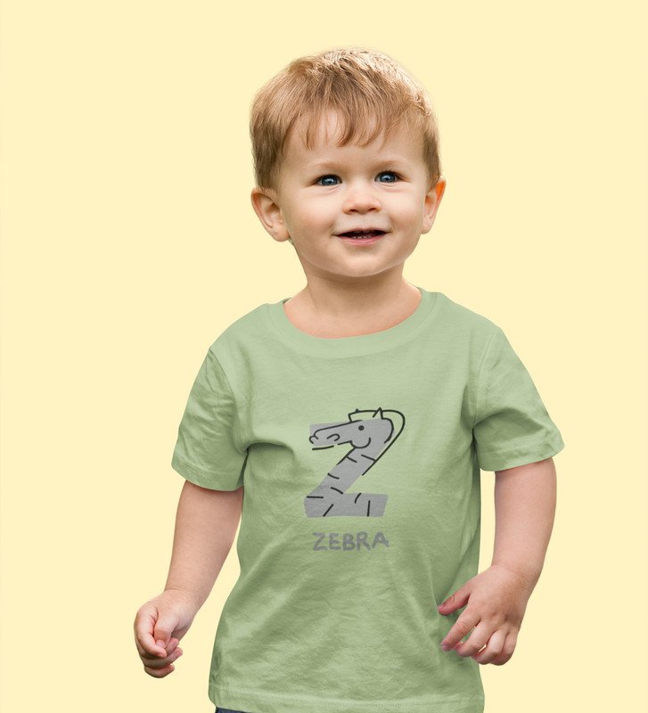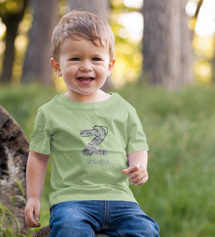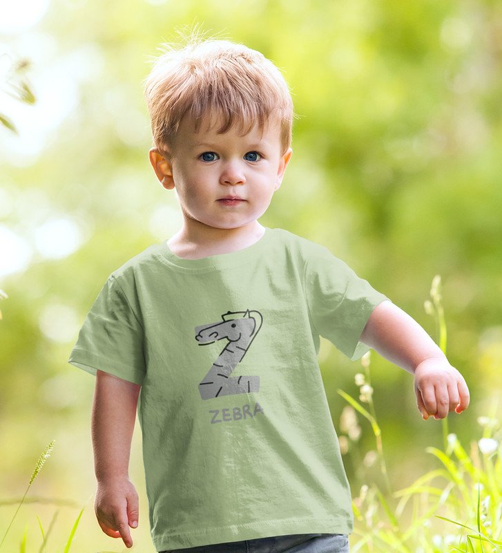 Zigzag Zebra,Boys Round Neck Printed Blended Cotton tshirt (olive)