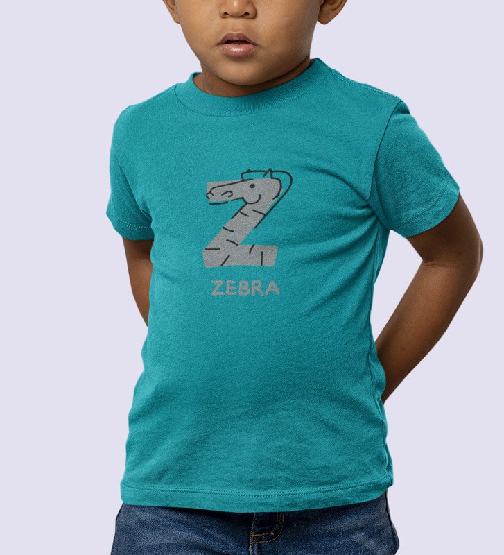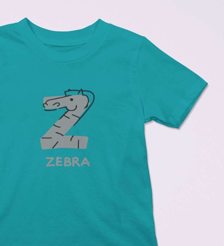 Zigzag Zebra,Boys Round Neck Printed Blended Cotton Tshirt (Teal)
