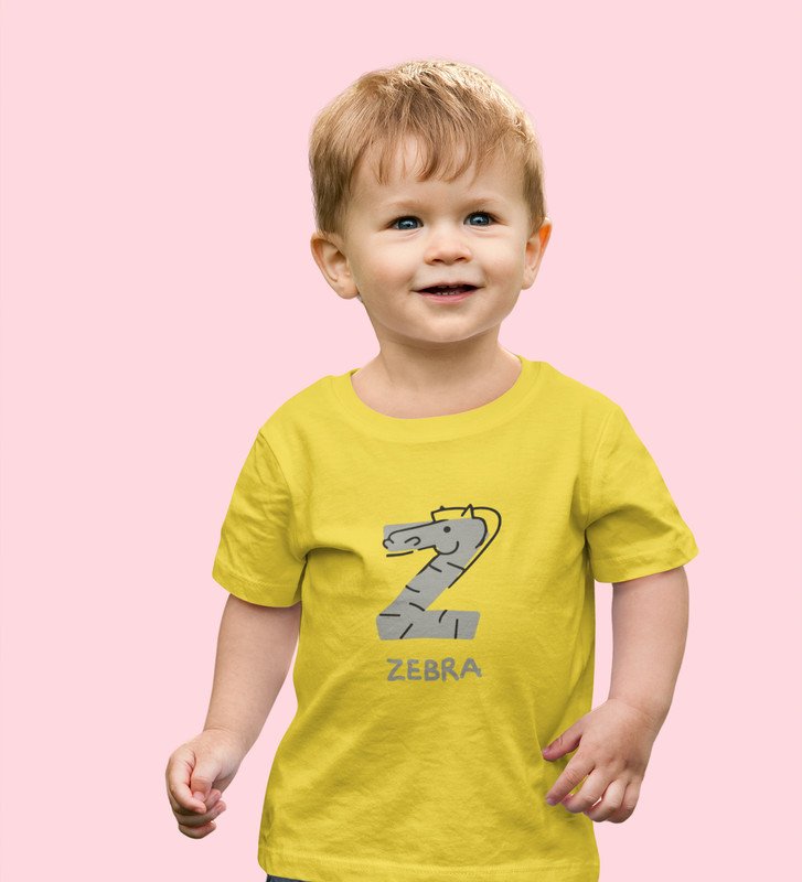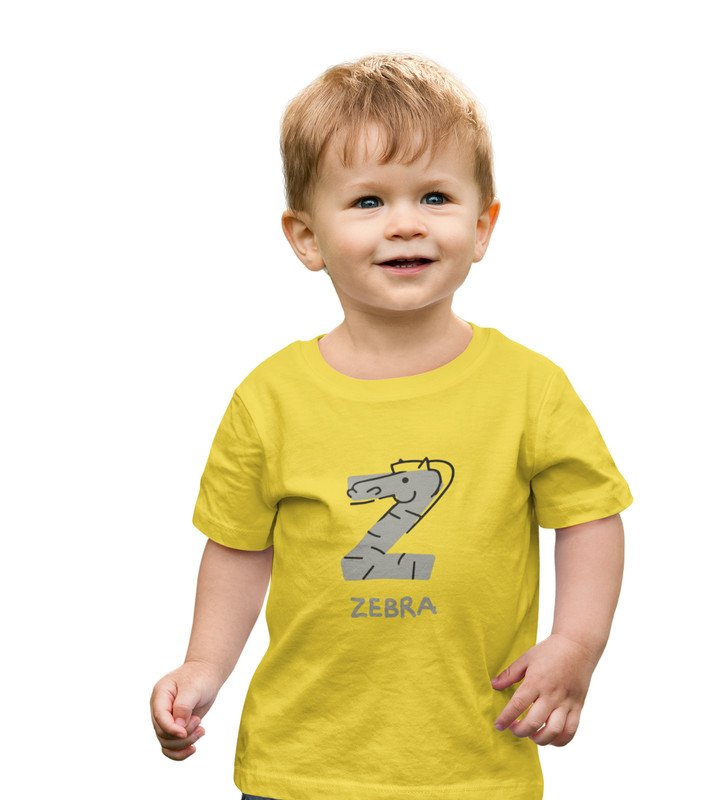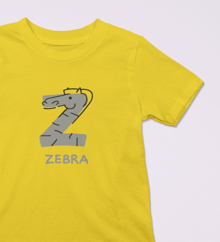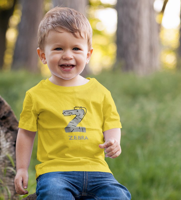 Zigzag Zebra,Boys Round Neck Printed Blended Cotton tshirt (yellow)