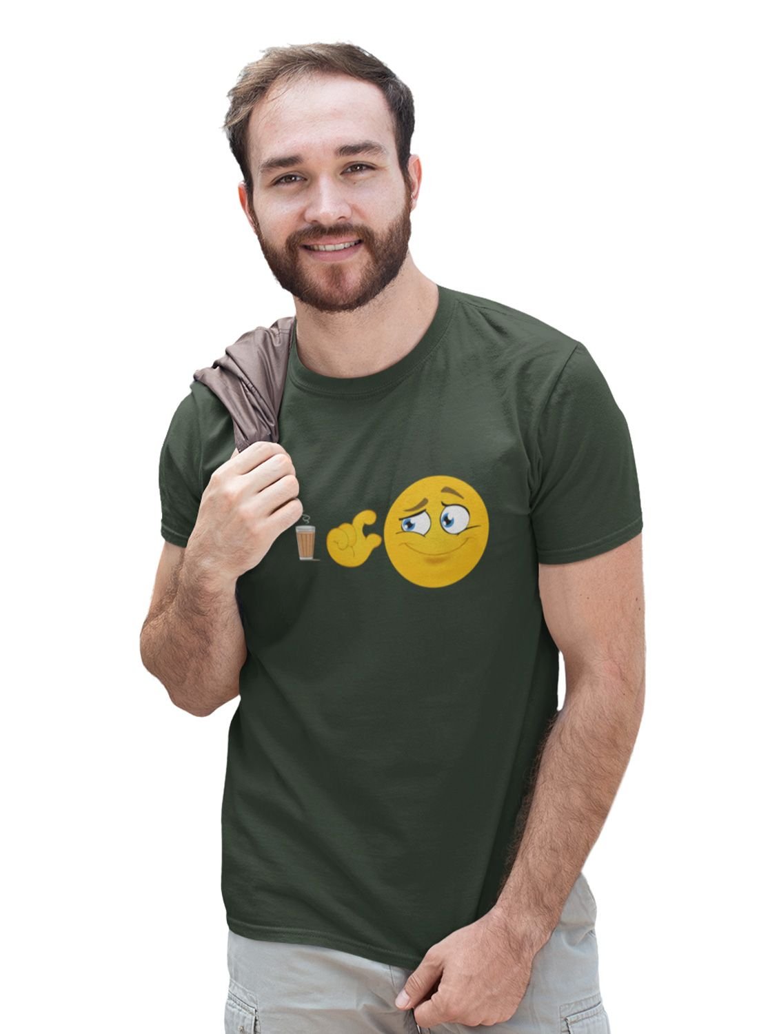 A Cup of Tea for Me Printed T-shirt (Green) - Clothes for Emoji Lovers - Suitable for Fun Events - Foremost Gifting Material for Your Friends and Close Ones