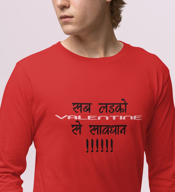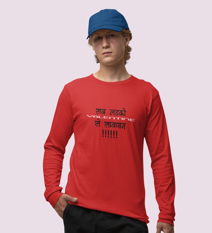 Be Aware: Printed (red) Full Sleeve T-Shirt For Singles