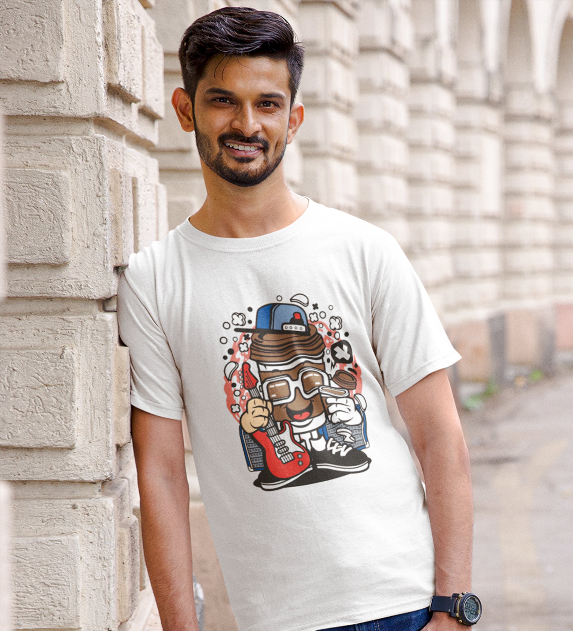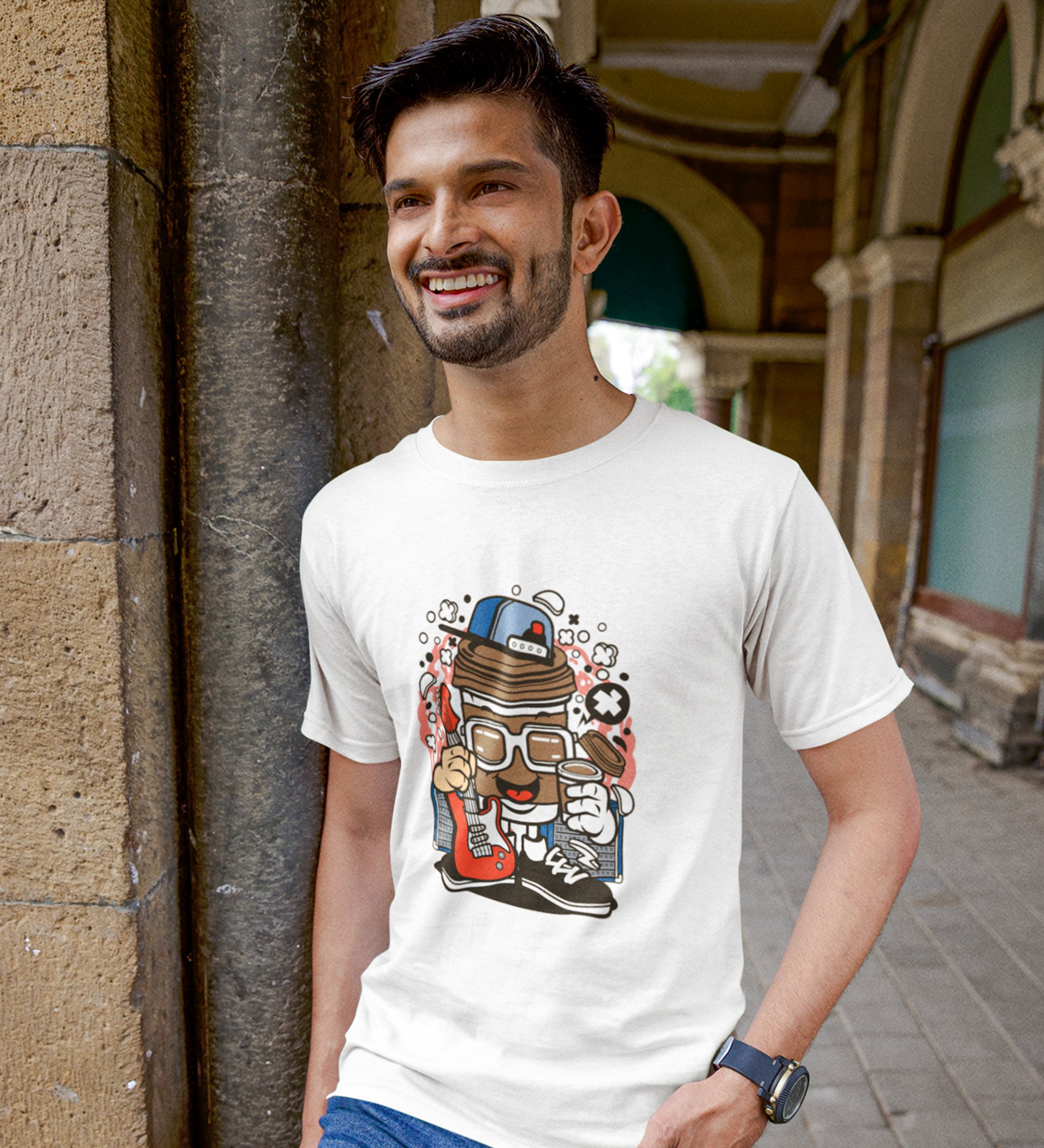 Cool Coffee White Round Neck Cotton Half Sleeved Men's T-Shirt with Printed Graphics