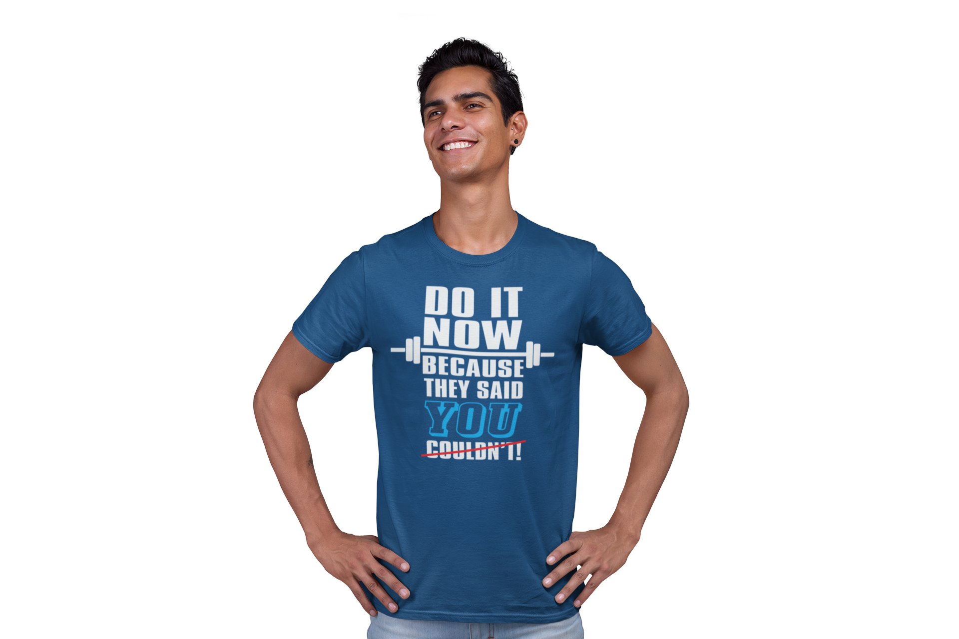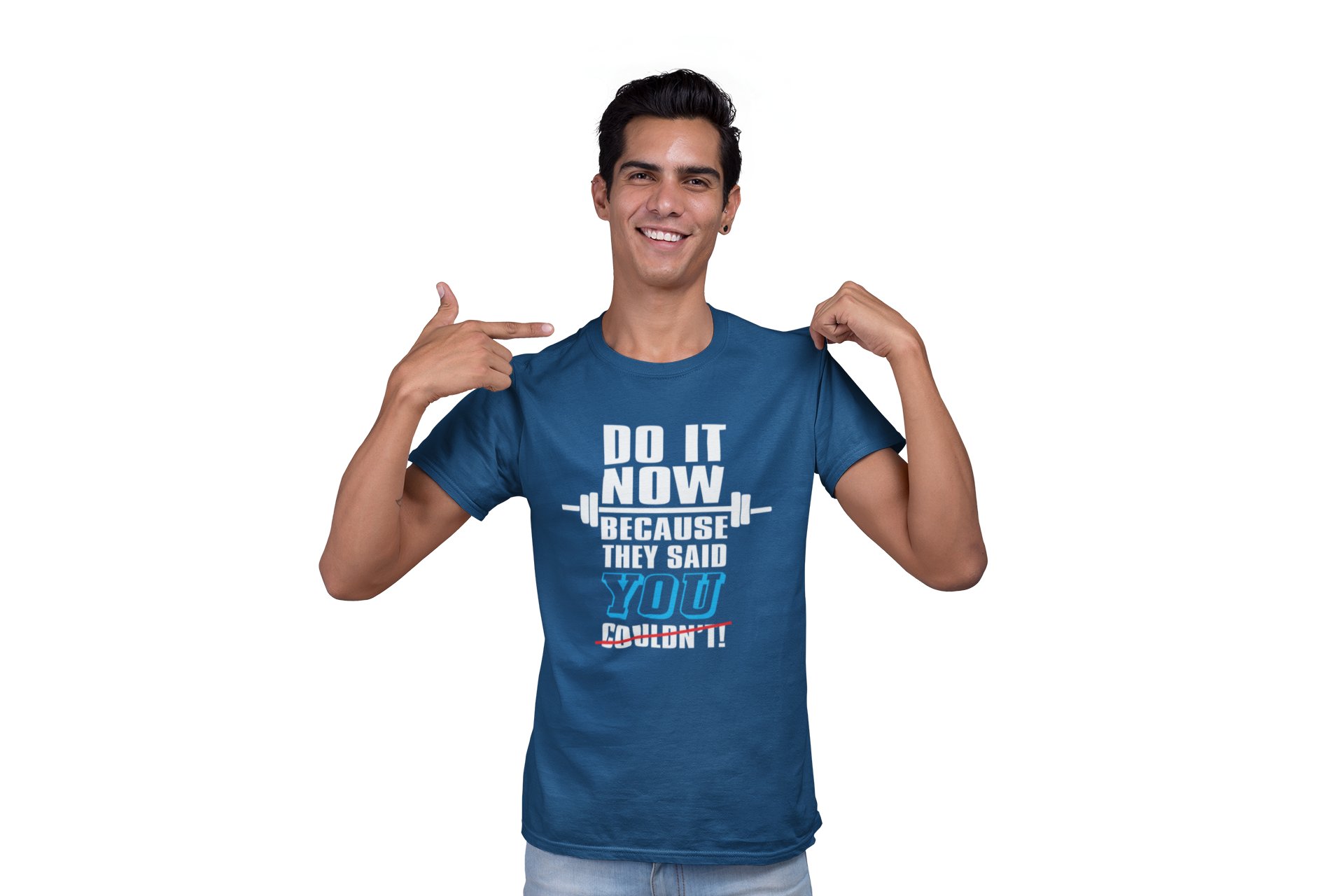 Do It Now Beacuse They Said You Couldn't, Round Neck Gym Tshirt (BG Blue) (Blue Tshirt) - Clothes for Gym Lovers - Suitable for Gym Going Person - Foremost Gifting Material for Your Friends and Close Ones
