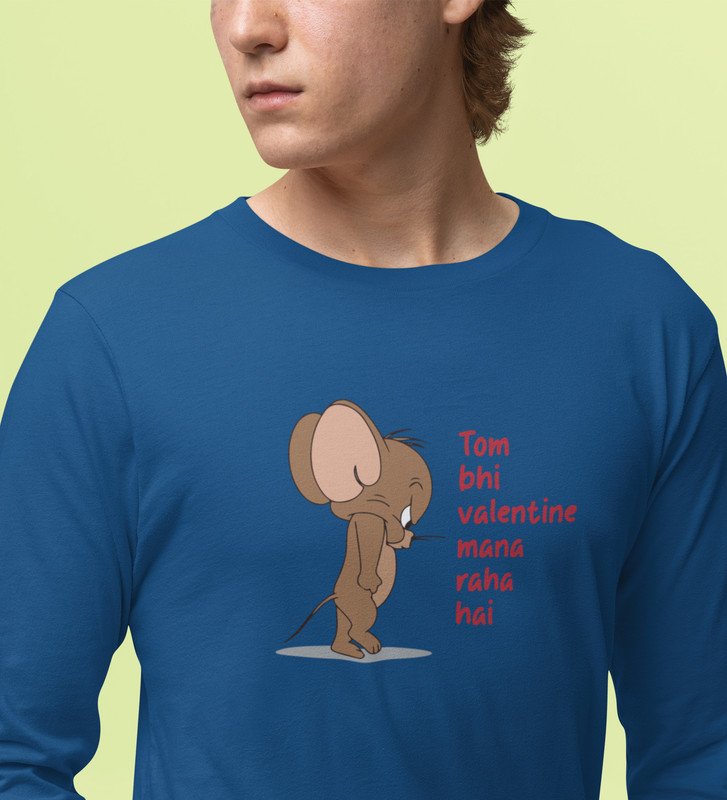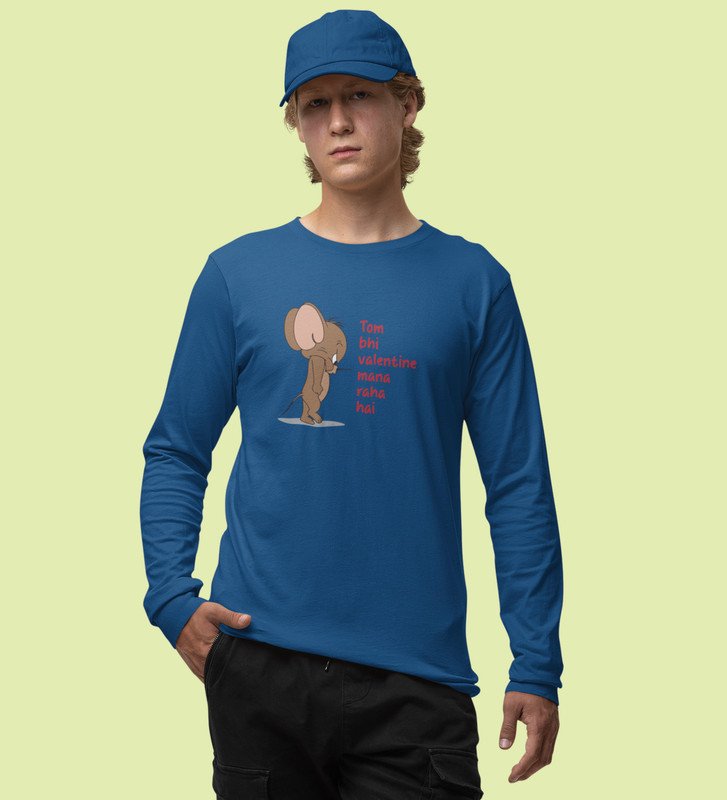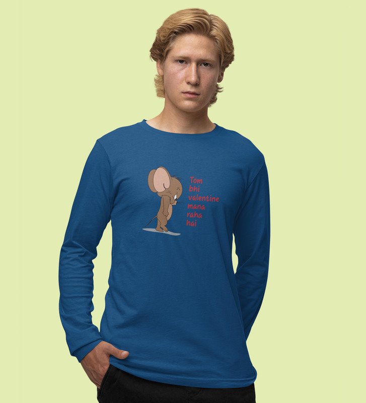 Even Tom Has A Valentine: (blue) Full Sleeve T-Shirt For Singles With Print
