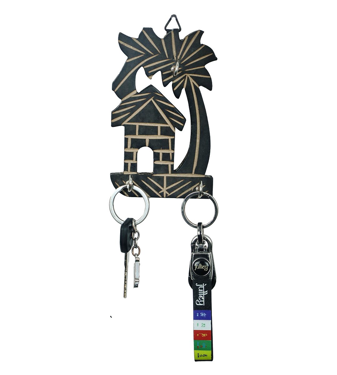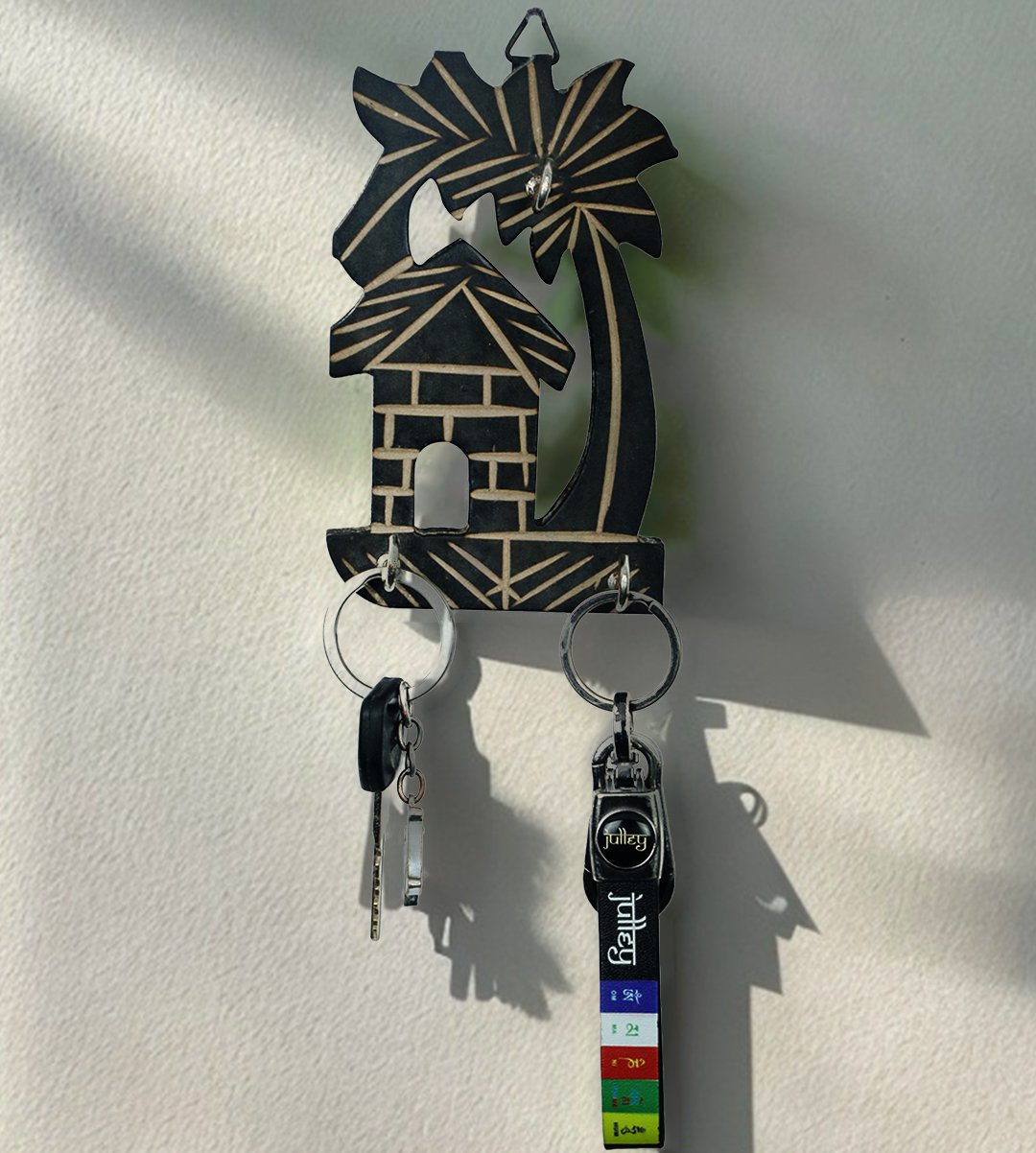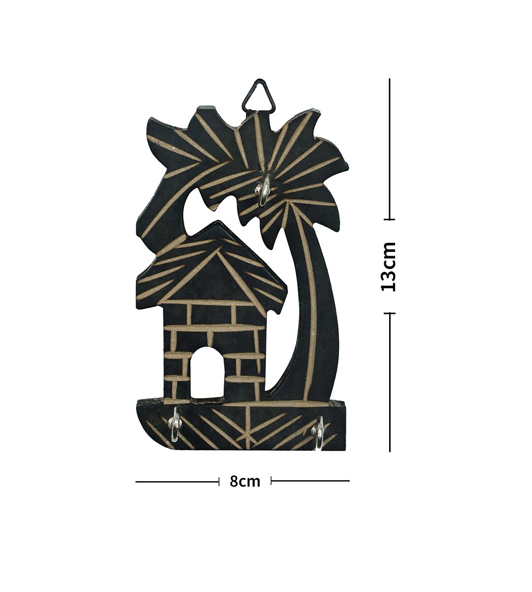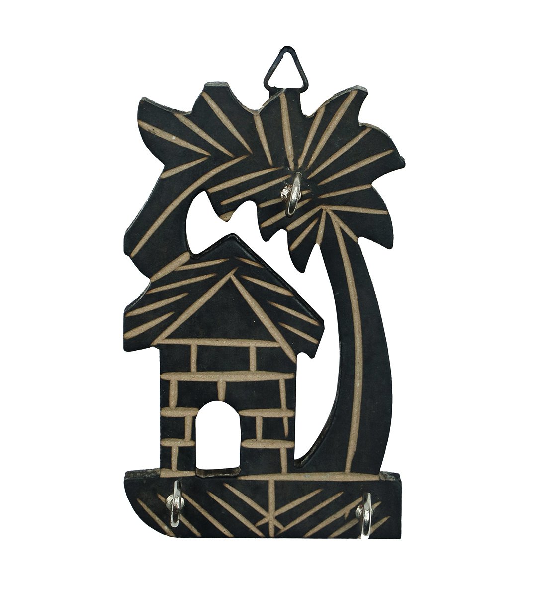 House and tree ,tree bended left wooden hanging keystand / key rack for walls of your home and offices (black)