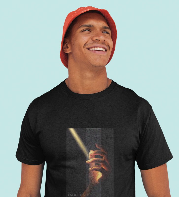 Illumination, A Casual Cool: Elevate Your Look with Black Trendy Front Print Round Neck Tee