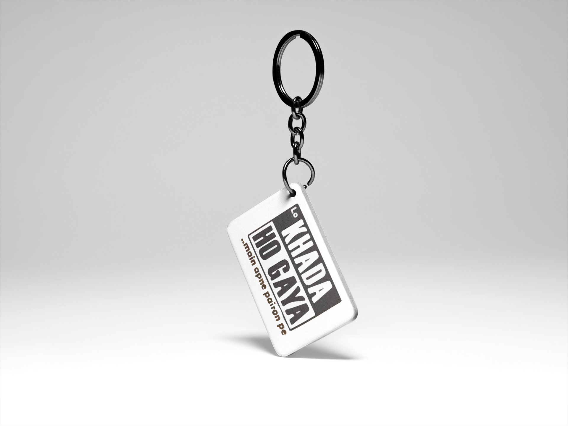 Khada Ho Gaya Main Apne Pairon Pe - acryllic printed white keychains/ keyrings for bollywood lover people(Pack Of 2)