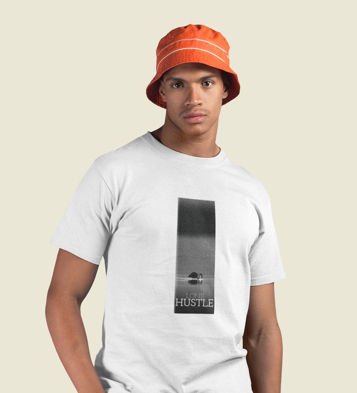 Lone Hustle, Fashion Fusion: White Modern Men's Oversized Tee with Front Graphic Pop