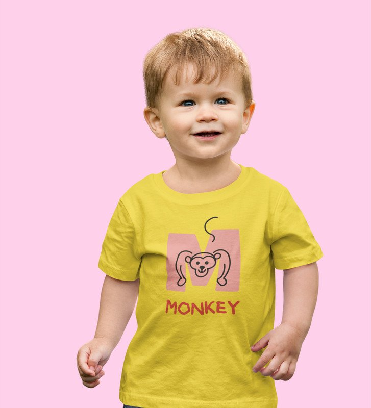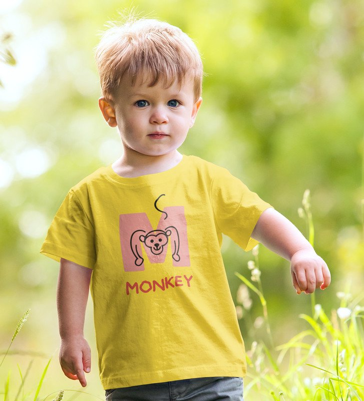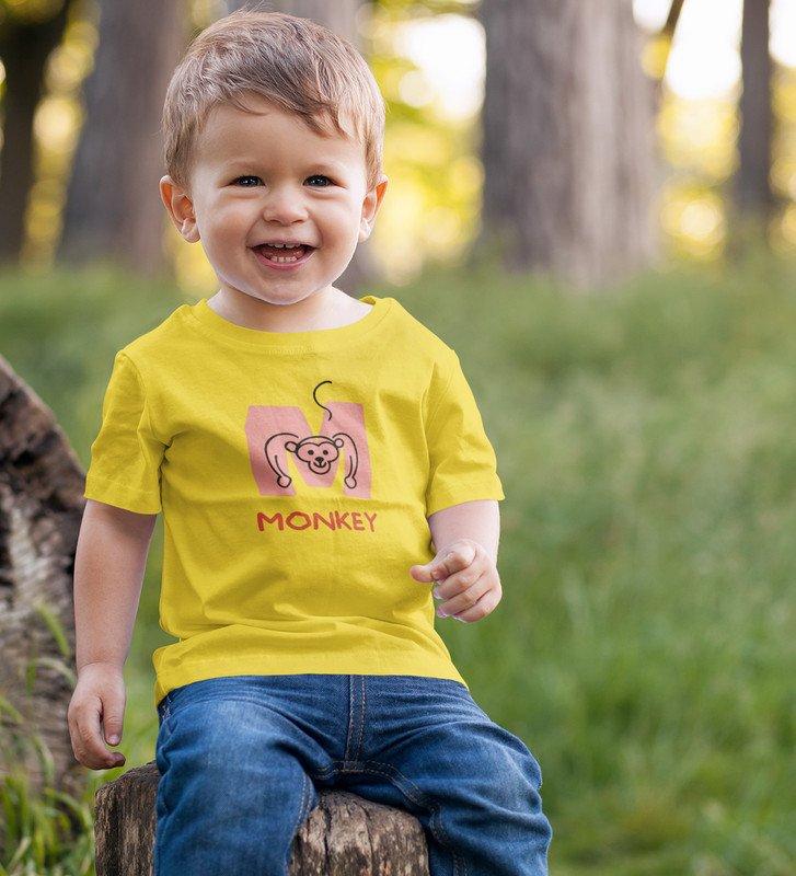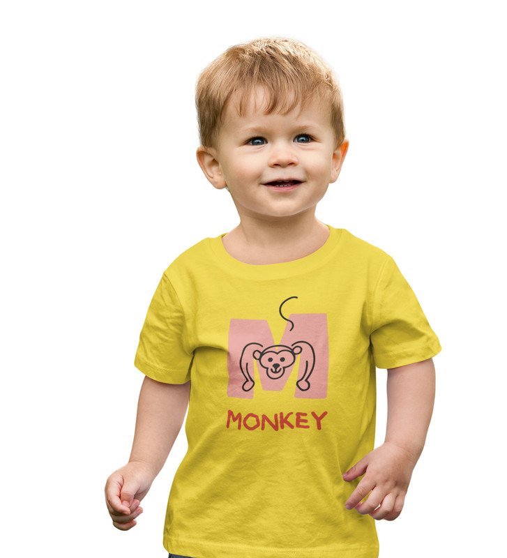 Monkey Love, Boys Cotton Text Print tshirt (yellow)