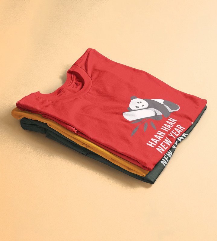 New Year Feast Red Graphic Printed T-shirt For Mens Boys