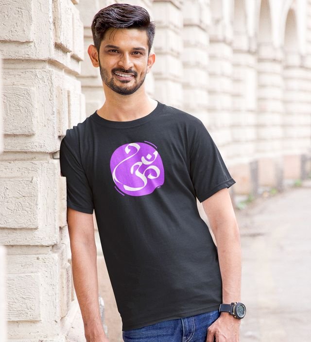 Om! Black Round Neck Cotton Half Sleeved Men T-Shirt with Printed Graphics