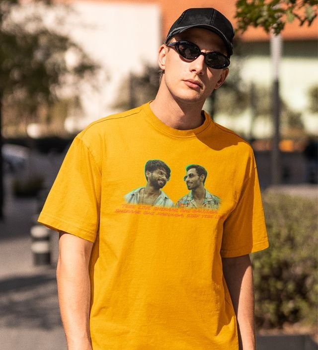Only for Friend Yellow Round Neck Cotton Half Sleeved Men T-Shirt with Printed Graphics