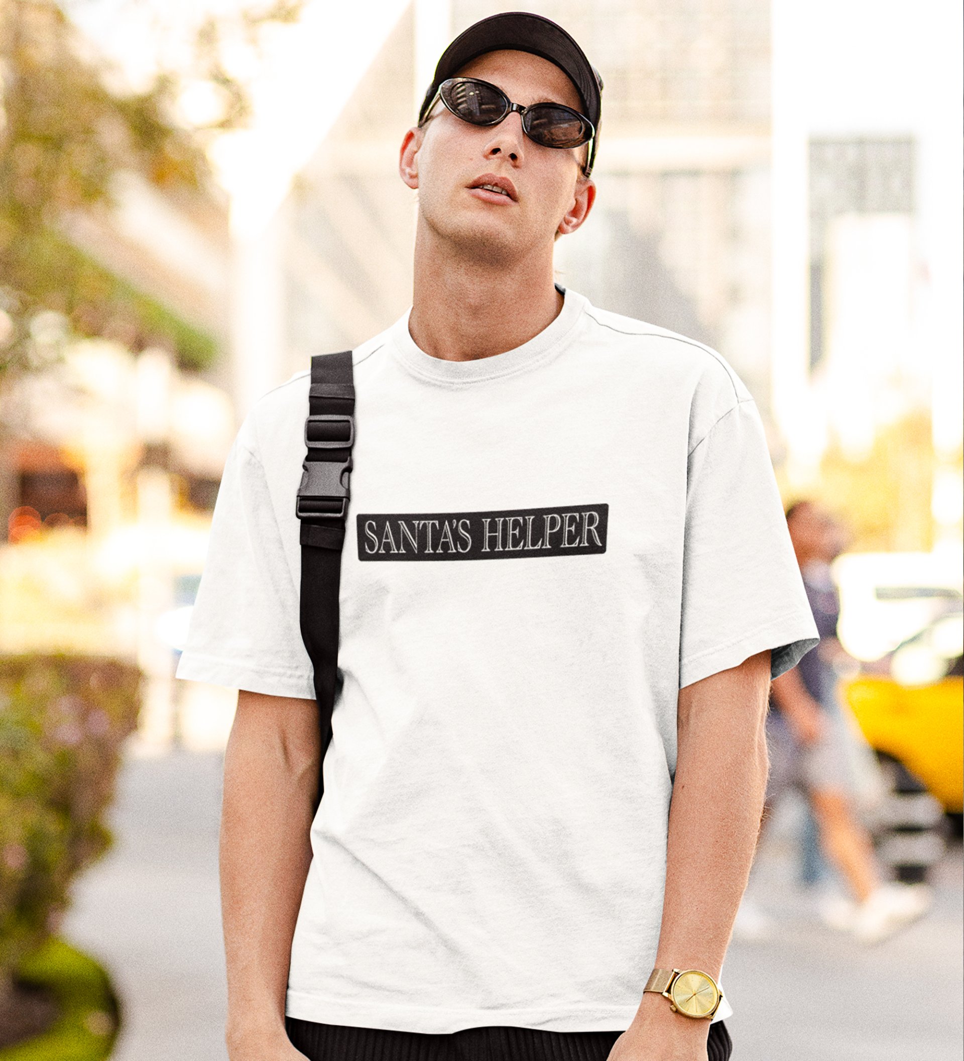 Santa's Helper White Round Neck Cotton Half Sleeved Men's T-Shirt with Printed Graphics