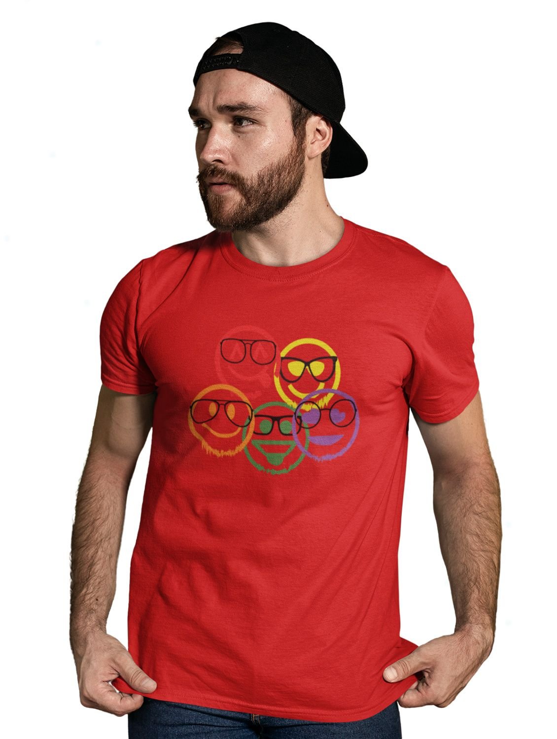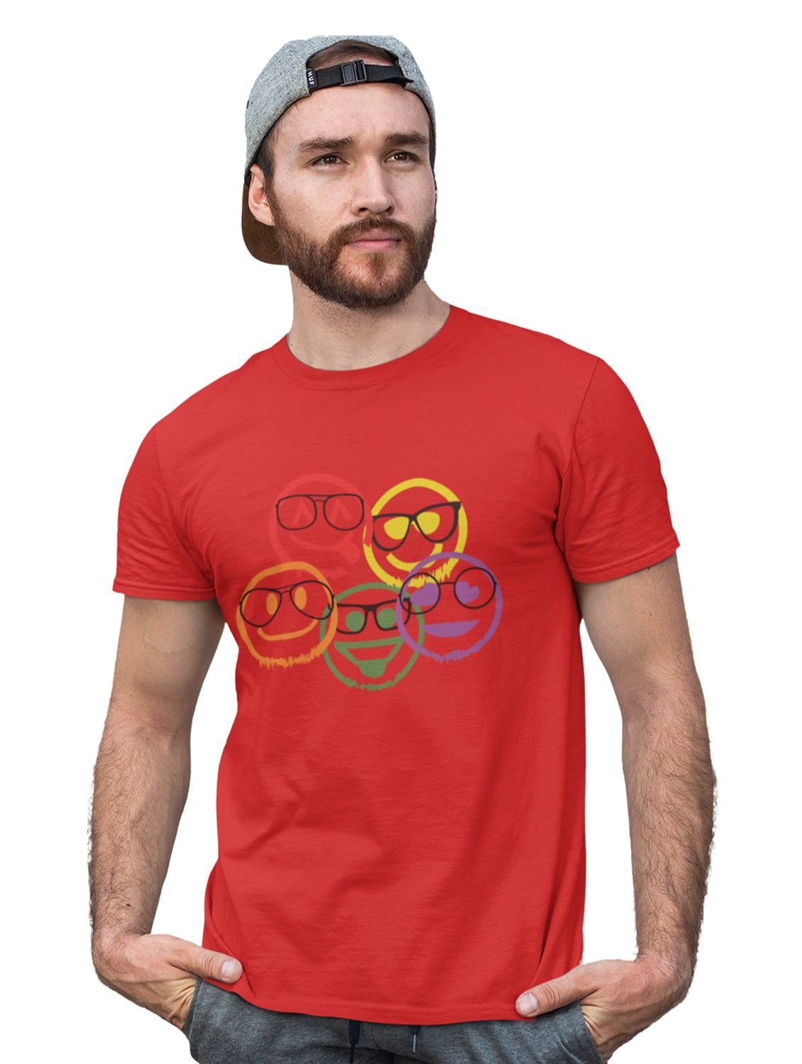Scribbled Five different Emojis T-shirt (Red) - Clothes for Emoji Lovers - Foremost Gifting Material for Your Friends and Close Ones