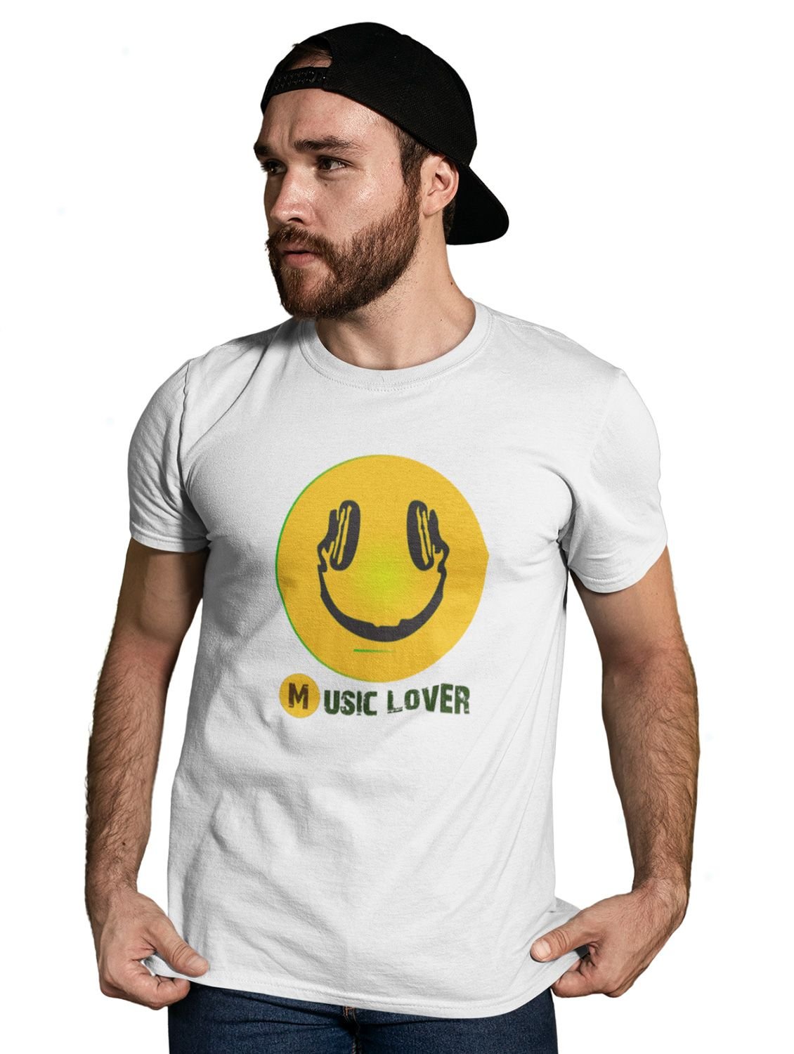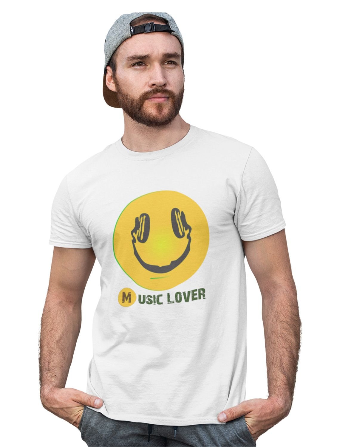 Smile with a Headphone Blend T-shirt (White) - Clothes for Emoji Lovers -Foremost Gifting Material for Your Friends and Close Ones