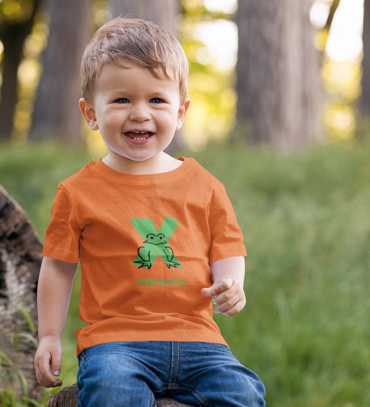 Xenopus Octopus,Boys Cotton Text Print Tshirt (orange)